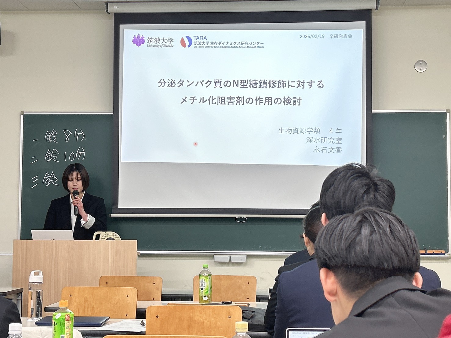 2月21日に生物資源学類の卒業研究発表会が行われました。当研究室からは、池田、平野、丸橋の3名が発表を行いました。